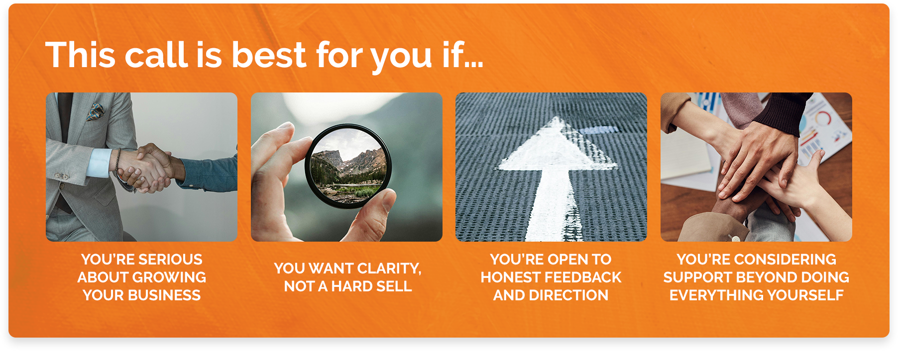 This is a relaxed, no-pressure conversation to understand where you’re at and whether working together makes sense.